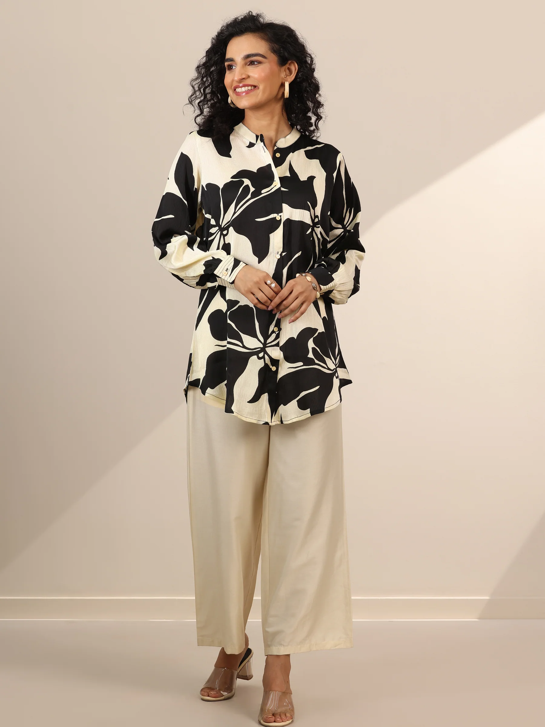 Off White Printed Silk Blend Straight Tunic